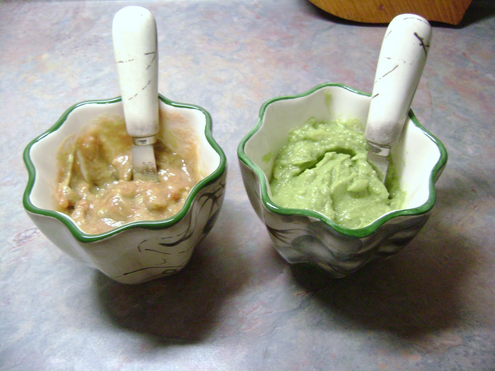 Salsa with guacamole on the left, guacamole on the right. Tasty additions! |