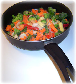 | frozen veggies in pan with oil |