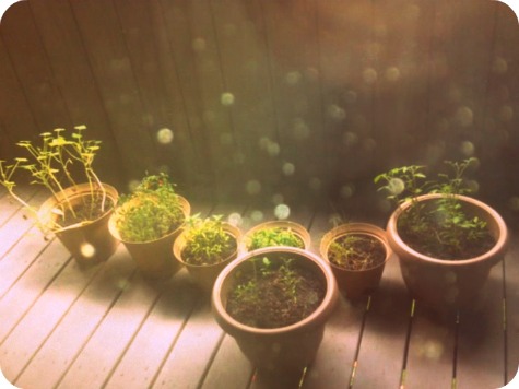 I thought the texture from the raindrops was pretty awesome. I took this with my phone, which is usually not my camera of choice, but I liked it. {Yes, the plants are all in a sad state- pretty sure we planted them too late.}