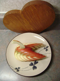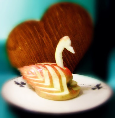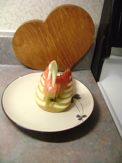 HONK HONK- I made a swan out of an apple! Sadly, I do not yet know how to make an apple out of a swan. That might take a little more gene splicing and a lot less fruit slicing. Ha ha ha.