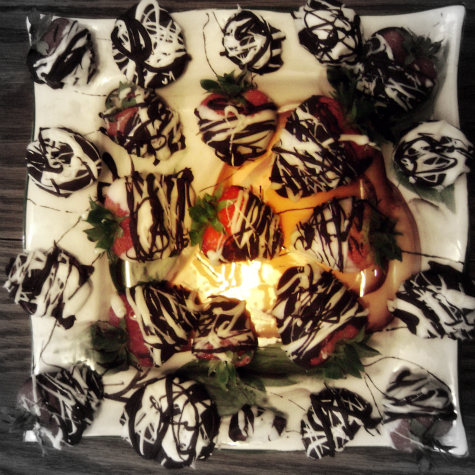 far more than my fair share. {The mister was happy I left a few for him after he came home from work!} I dipped whole strawberries in either dark or white baker's chocolate, and then drizzled them with the opposite flavor. Also, I tried slicing them into rounds, and dipped and drizzled those as well. They stayed incredibly fresh, not that that was an issue though, because they disappeared