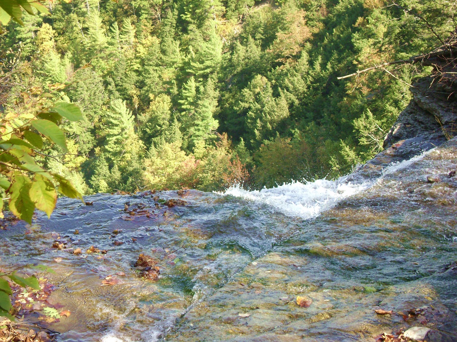 looking down on the edge to the trees below, JUST where the water spills over to go down down down. |